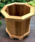 We create custom planters and garden beds in various shapes and sizes to meet your growing needs and fit your style. Tapered cube, trough, hexagon, and octagon are some of our favorite styles. Each can be made in small, medium, and large dimensions, and with or without feet. Ask about specialty builds, like the waist-height strawberry bed shown here, or share your own ideas on our custom order page. Occasionally, we are able to provide rough-sawn 2x thick, old-growth tight knot cedar boards for durable, easy-to-assemble raised beds that last many years.