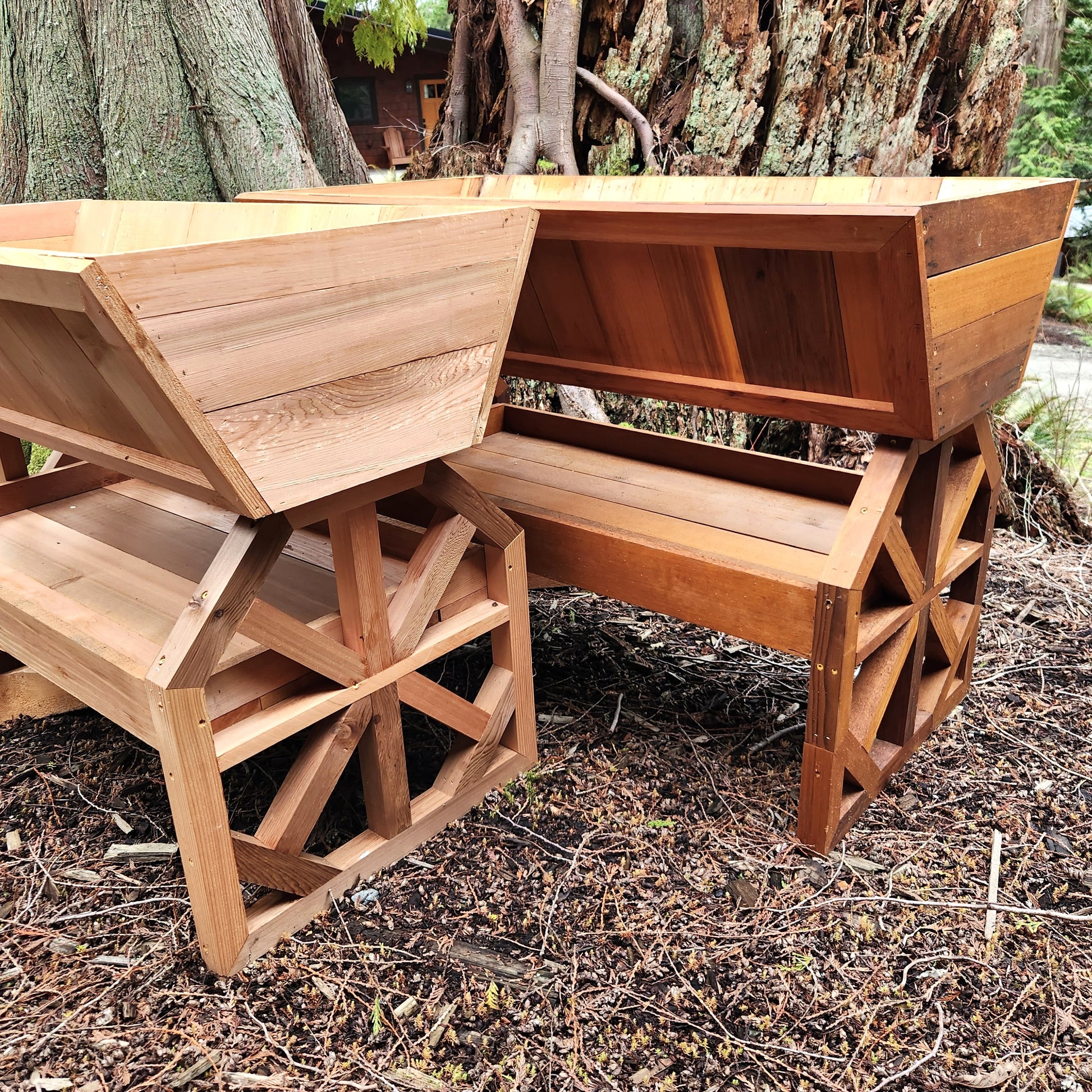Add a rustic accent to your outdoor space with our wagon wheel planters. The Classic Cart includes a deep trough elevated with sturdy, wheel-shaped feet. The Farm Stand offers a spacious, waist-height growing bed and a lower shelf for seedlings or gardening essentials.